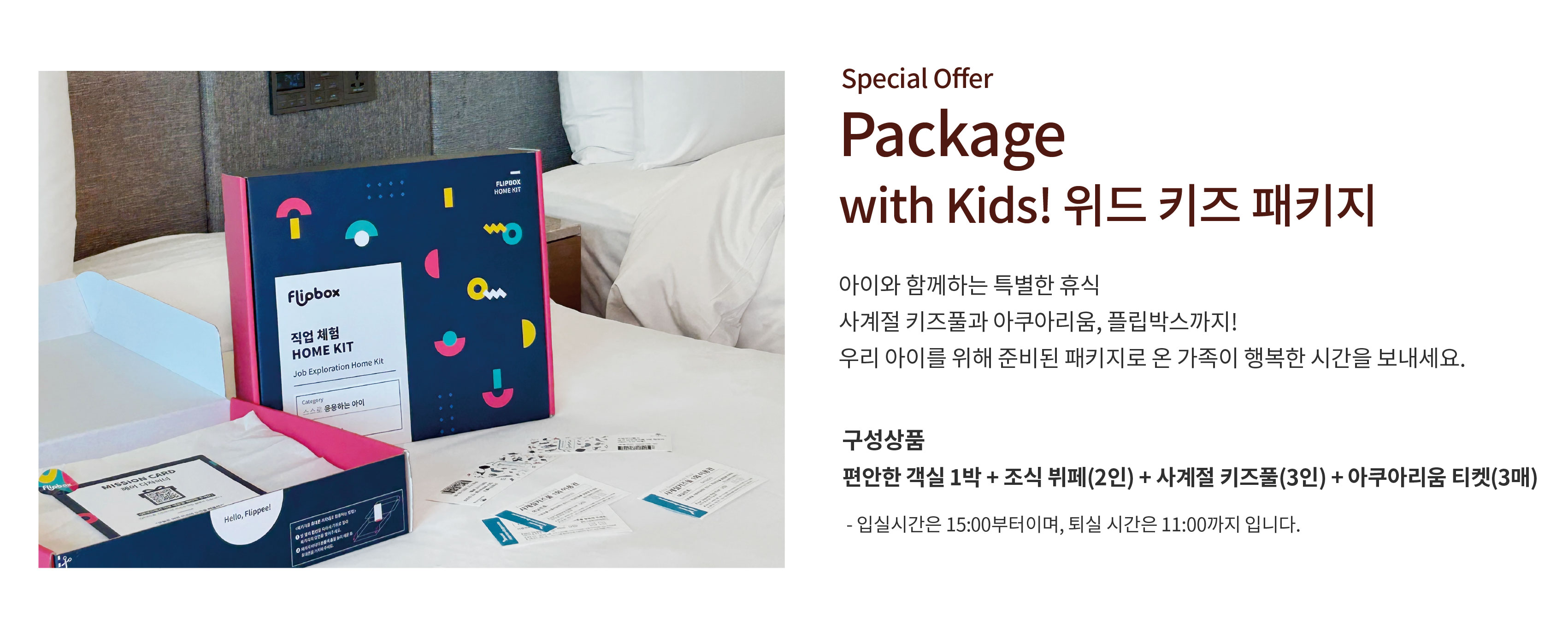 - 07:00 ~ 10:00 (09:30 입장마감) ■ 사계절 온천풀 (3인 제공) - 4부제로 진행/ 매달 첫째주 월요일 정기 휴무 - 18개월 미만 입장 불가(18개월~36개월 키즈풀만 입장 가능) - 수영복, 수모또는 캡모자 필참 - 사계절 온천풀은 예약제로 운영합니다. (선착순) 자세한내용은 키즈풀 문의: 053-602-7285 ■ 아쿠아리움 (3매 제공) - 월~목 : 10:30 ~20:00 / 금~일 : 10:30 ~ 20: 30 - 입장마감 19:00 , 백화점 운영시간/휴무와 동일 - 아쿠아리움 티켓 수령은 프런트 데스크에서 가능(직접수령만 가능) , 자세한 문의 053-247-8899 ■ 플립박스 : 미취학 아동 기준 (객실당 1개 랜덤제공) 직업 체험 키트 (의사, 경찰, 학자등 ) ■ MMM 미네랄솝 (선착순 제공) 취소 및 환불 규정 - 투숙 예정일 2일 전, 위약금 없이 취소 및 변경이 가능합니다. - 투숙 예정일 1일 전, 취소 및 노쇼(No-show)발생 시, 50%가 위약금으로 부과됩니다. - 투숙 예정일 당일, 취소/변경 및 노쇼(No-show)발생 시, 100%가 위약금으로 부과됩니다. |